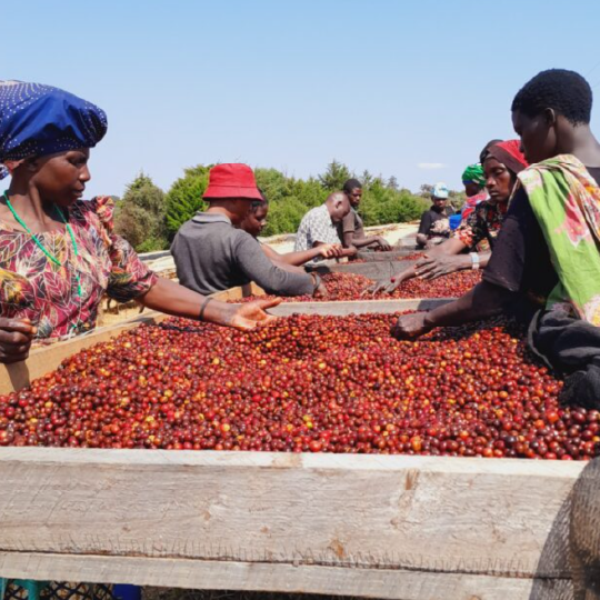 This women-produced lot comes from the Hezya AMCOS in Tanzania’s Mbozi region, where nearly 300 smallholders grow Bourbon, N39, Kent, and local varieties at 1,590–1,670 MASL. AMCOS (Agricultural Marketing Cooperative Societies) manage 95% of Tanzania’s coffee production, and smallholders must be members to access support for production, processing, storage, transport, marketing, and government aid. The Hezya group is part of the Usawa Kahawa Project, established in 2021 to promote gender equity in coffee. Through the project, women receive training in cultivation and financial decision-making, supported by local gender champions. Hezya AMCOS also hosts a Shamba Darasa Model Farm, showcasing best practices and empowering women to lead by example. This lot represents both high-quality production and meaningful community-driven change.