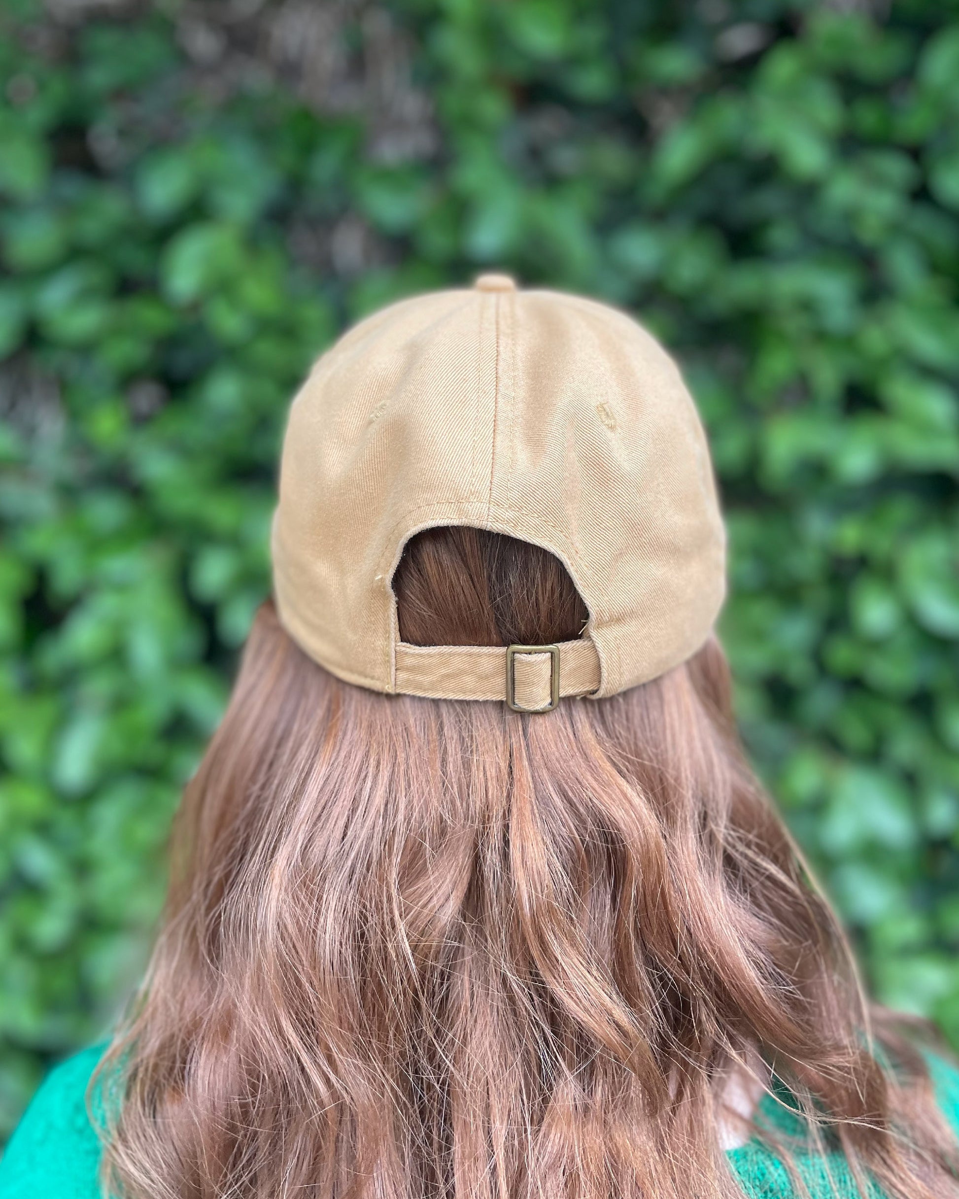 Additional features include embroidered eyelets for breathability and an antique brass snap with a convenient tuck-in closure. Whether you're out for a coffee run or enjoying a sunny day, this cap is sure to become your go-to accessory!